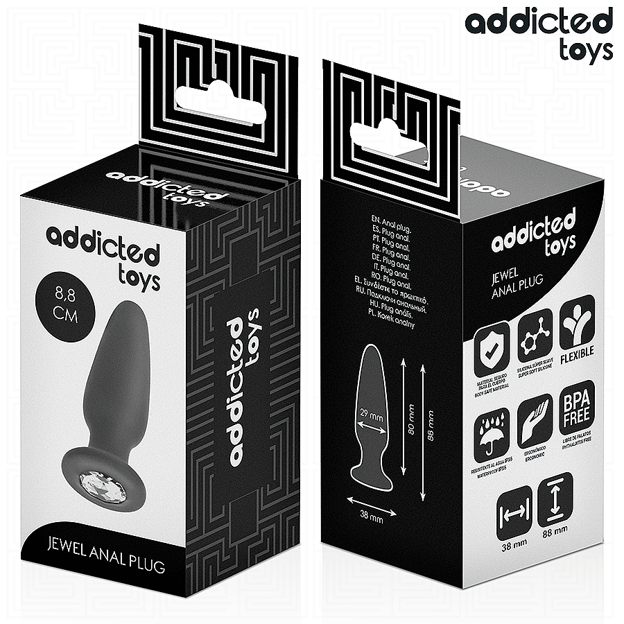 Addicted Toys Anal Plug With Jewel Silicone Size S vás hladce uvede do světa anální hry a zanechá po sobě jiskřivý dojem. Je kompaktní a rafinovaný, takže se krásně nosí i po delší dobu. Tělo z lékařského silikonu je sametově hebké na dotek a flexibilní, aby se přizpůsobilo vašemu tempu. Ergonomický tvar podporuje snadné zasouvání, zatímco rozšířená základna se šperkem nejen láká očima, ale zároveň drží vše bezpečně na místě. Velikost S je ideální pro začátečníky – poskytuje plnost bez zbytečného přepínání, a přitom dovolí si hrát déle a pohodlněji. Hladký povrch klouže s kapkou vodního lubrikantu snově a bez tření. Každý milimetr je promyšlený – od kompaktní výšky přes příjemnou šířku až po zasunovatelnou délku, která nabízí kontrolu i jemnou intenzitu.