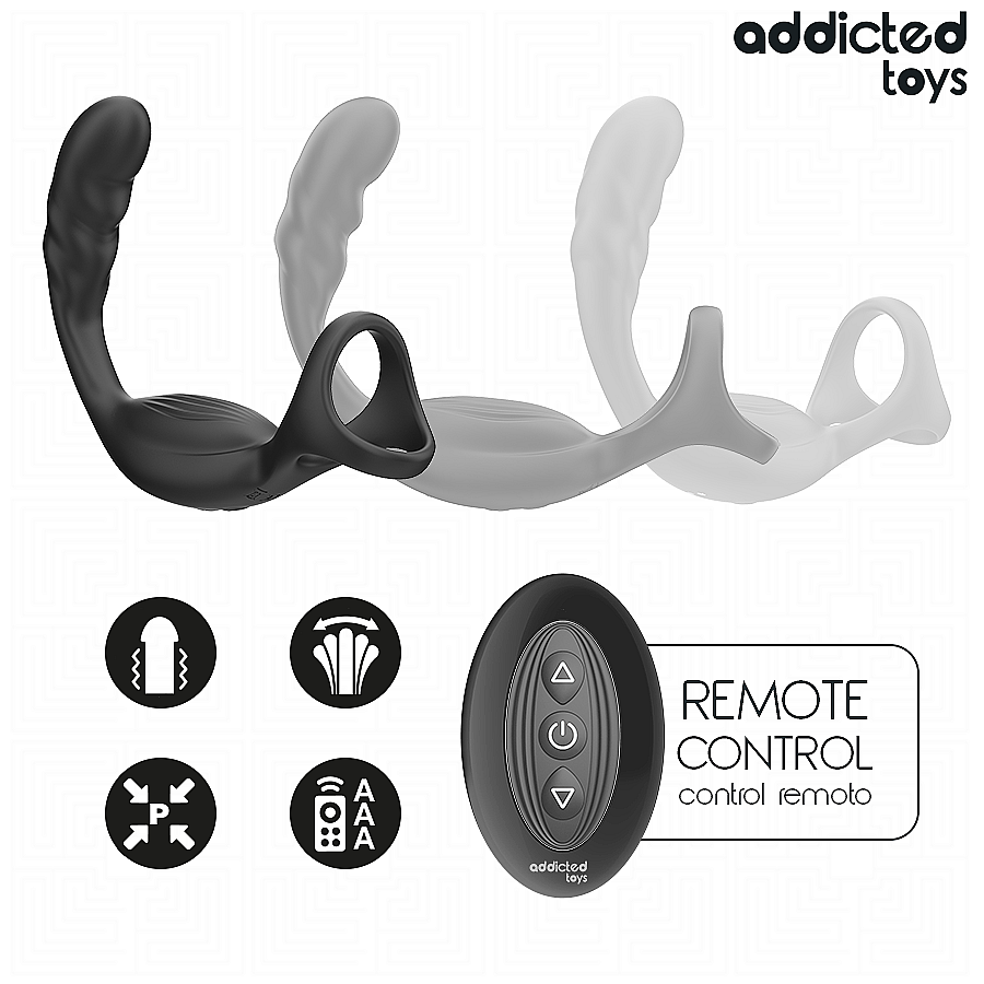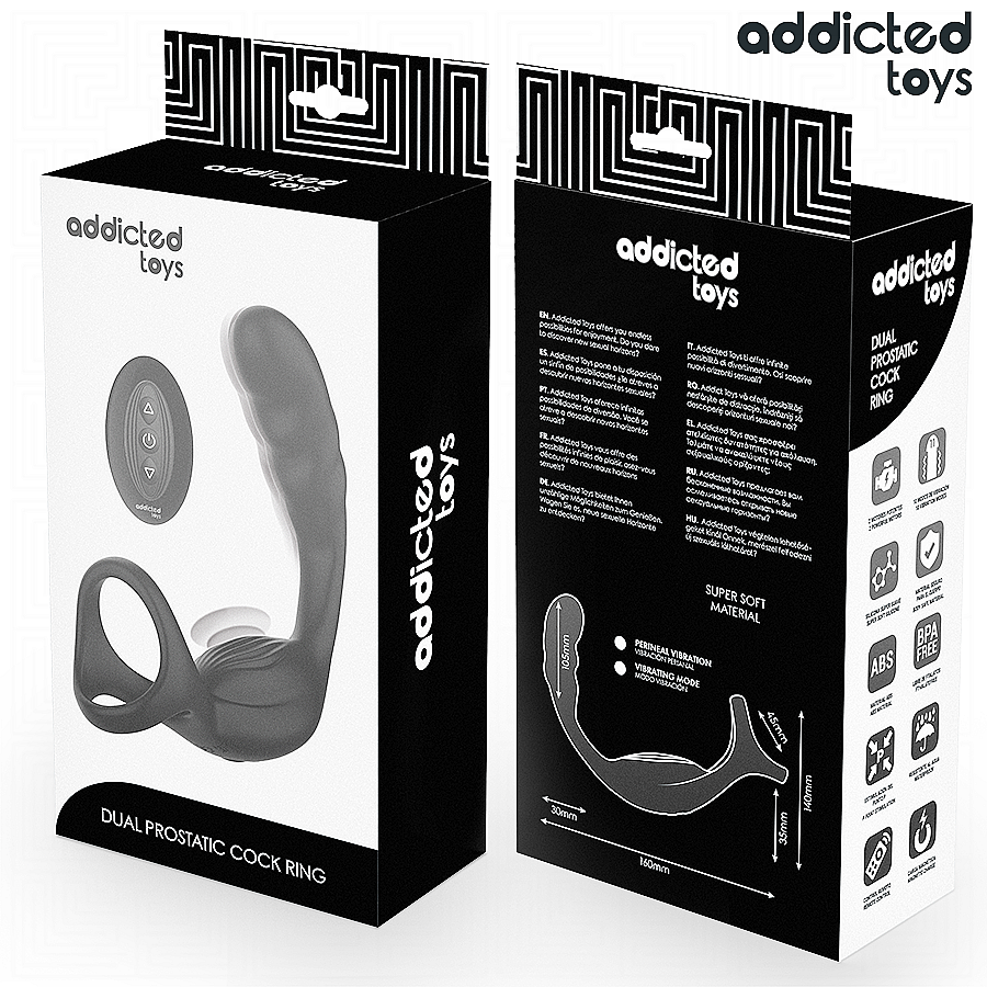 Addicted Toys Dual Prostatic Cock Ring je navržen tak, aby současně hýčkal penis a přesně masíroval P-bod. Dva výkonné, na sobě nezávislé motory vibrují hluboko a cíleně, takže každý rytmus zasáhne ta správná místa. 10 vibračních módů nabídne něžné vlny i pulzující lavinu – stačí přepnout a objevit svůj oblíbený styl. Dvojitý kroužek pevně, ale pohodlně obejme, podpoří erekci a prodlouží výdrž, zatímco zakřivené rameno se přesně opře o prostatu pro intenzivní vnitřní stimulaci. Bezdrátové dálkové ovládání přidá svobodu – hrajte si sami, nebo předejte kontrolu partnerovi. Ultra-měkký silikon v kombinaci s kvalitním ABS je sametově hebký, flexibilní a bez ftalátů, takže je bezpečný pro tělo. Magnetické nabíjení je pohodlné a čisté, voděodolné provedení zase dovolí hrátky bez zbytečných omezení. Se značkou Addicted Toys si dopřejete svobodu, jistotu i smyslnou funkčnost v jednom.