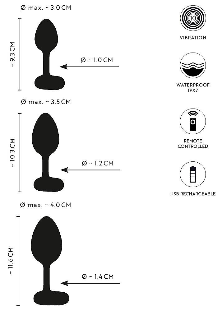 - Sada: 3 vibrační anální kolíky + dálkový ovladač