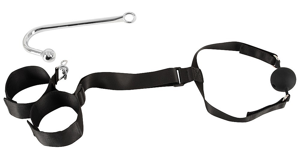 - Typ setu: bondage sada s análním hákem, pouty a roubíkem