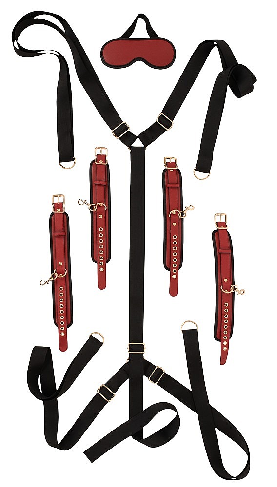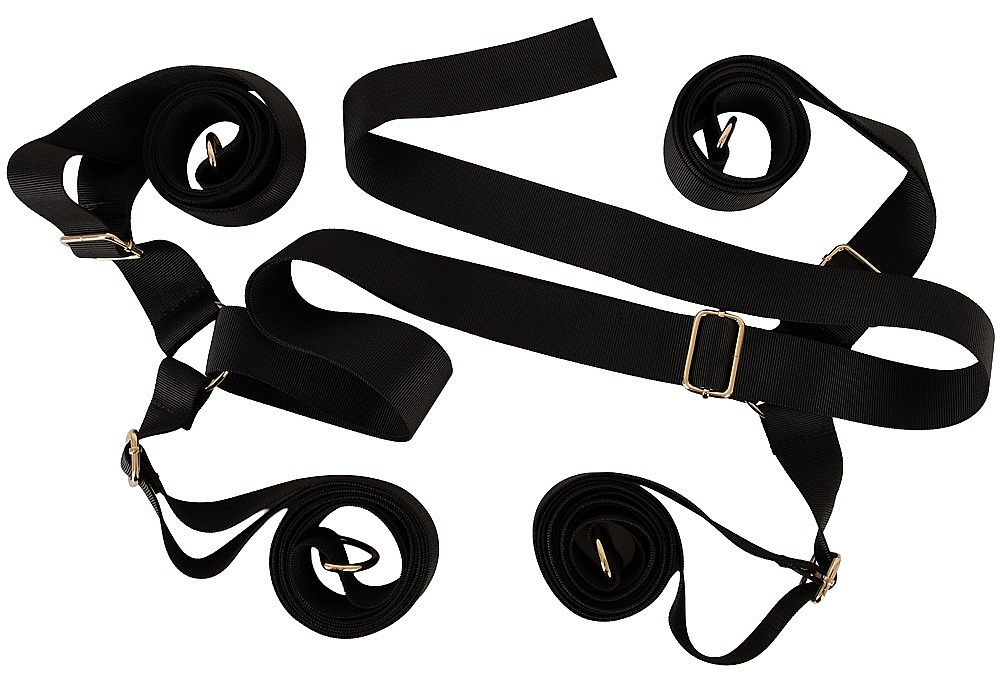 - Obsah balení: 1 X-popruh, 2 pouta na ruce, 2 pouta na kotníky, 1 páska přes oči
