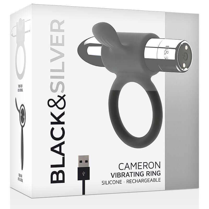 Kroužek na penis Black and Silver Cameron je nabíjecí.