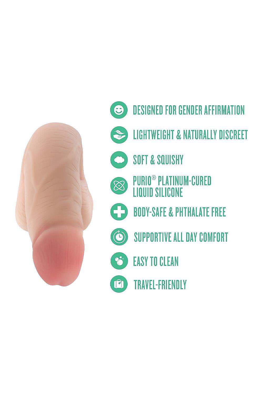 Blush UrSelf Affirm Dildo od značky Blush je silikonový packer vytvořený s důrazem na pohodlí těla i sebevyjádření. Je vyroben z materiálu Purio, tedy ze 100% body-safe platinového tekutého silikonu, který působí měkce, realisticky a příjemně se přizpůsobuje při nošení. Jeho živý tvar a flexibilní konstrukce přiléhají pohodlně k pokožce, takže pod oblečením vytváří přirozený a nenápadný vzhled. Lehká hmotnost podporuje komfort i při celodenním nošení a odolné zpracování z něj dělá praktického společníka pro běžnou rutinu. Hladký neporézní povrch pomáhá udržovat vysokou hygienu, snadno se čistí a zůstává příjemný při kontaktu s tělem. Tento model je promyšlený pro každodenní nošení, diskrétní styling i chvíle, kdy chcete posílit svůj pocit autenticity a sebevědomí.