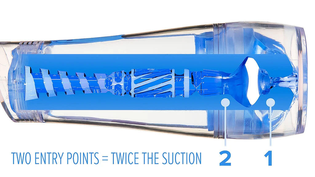 Flight Commander disponuje dvěma vstupními body, které zajišťují nejsilnější sací sílu než ostatní masturbátory z řady Flight.