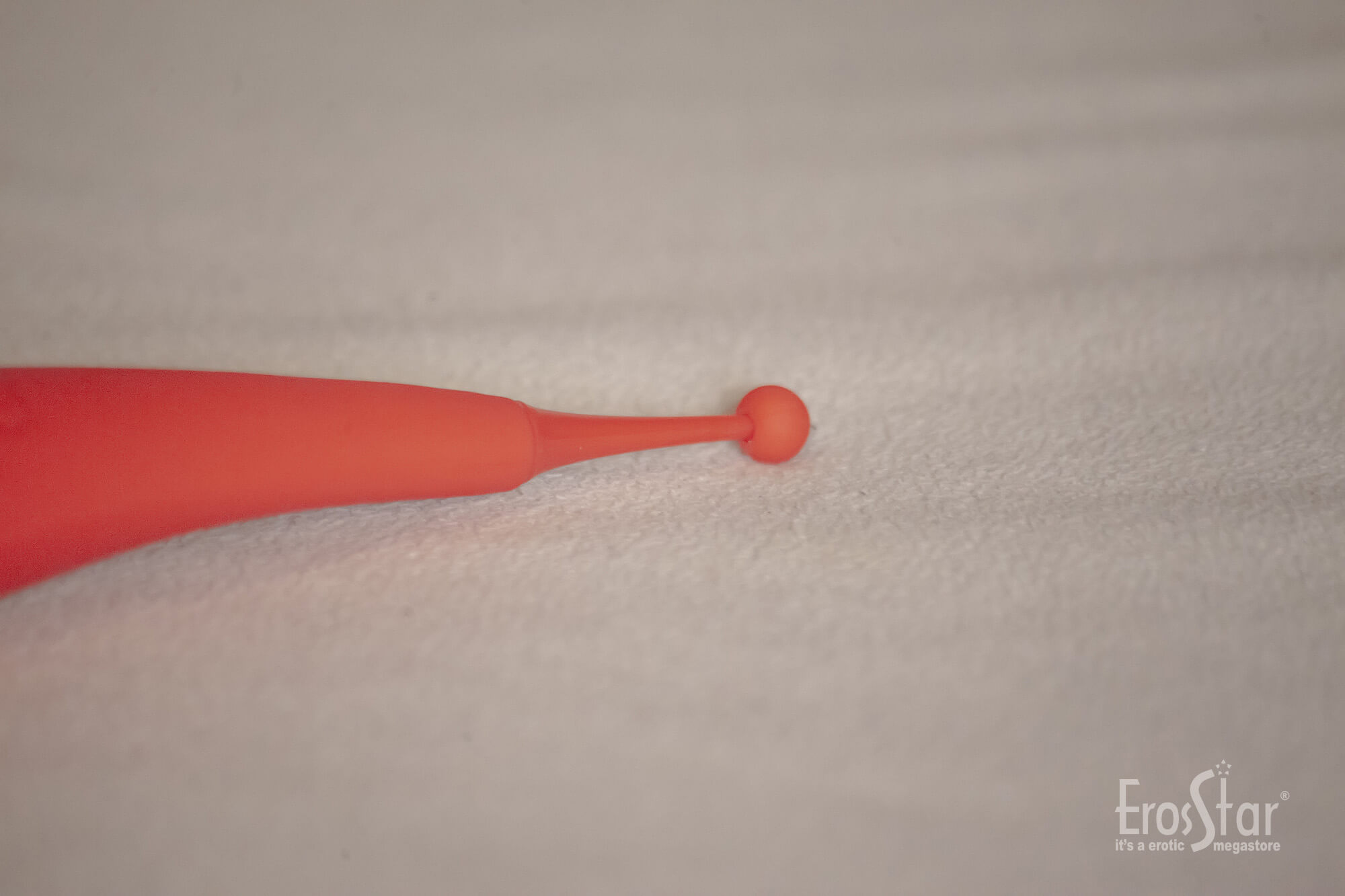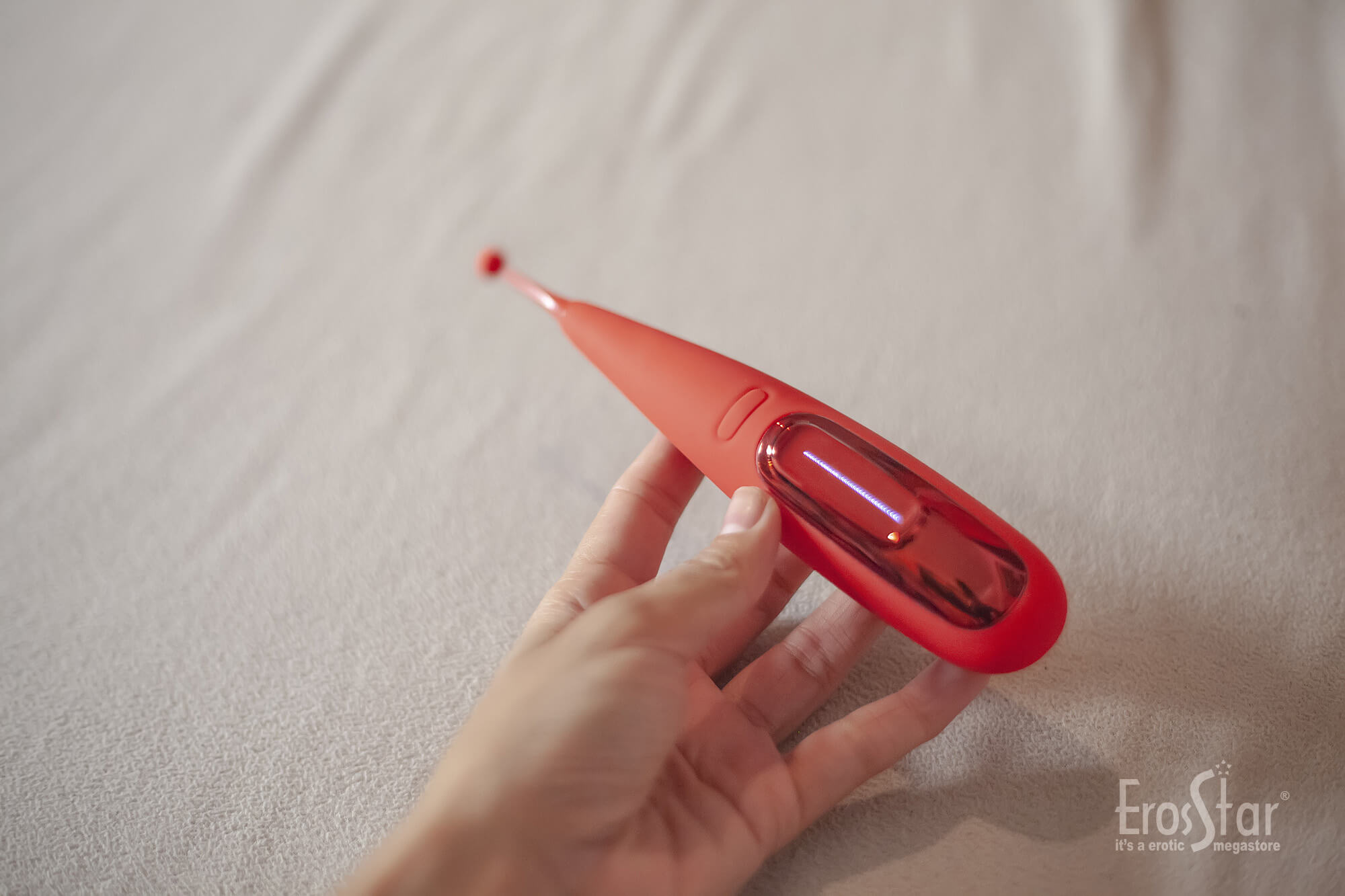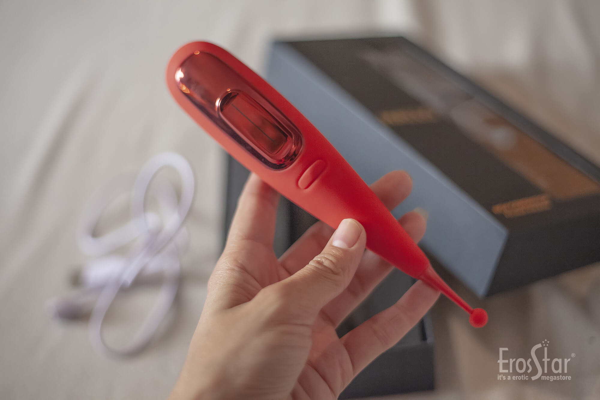 Když jsem stimulátor poprvé vyndala z krabice, přichytila jsem se u toho, jak si ho několik momentů převaluji v ruce a užívám si jeho hladký silikonový povrch. Svým tvarem bych ho přirovnala k psacímu peru, skvěle se drží a padne přesně do ruky. Silikon pokrývá tělo stimulátoru a kuličku, která je určena k dráždění. Zbytek je tvořen z ABS plastu. Je tvořen tak, aby si s ním každá užila i ve vaně, je voděodolný a díky hladkému povrchu je jeho údržba snadná.