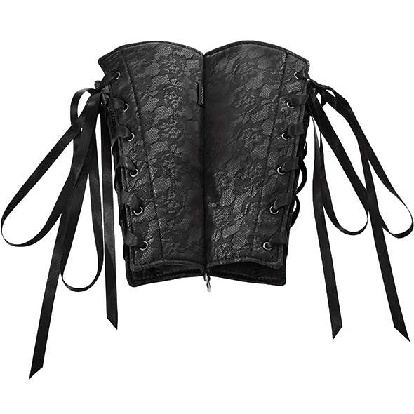 Sexy, bezpečné, lehké a při tom zábavné - to jsou krajková korzetová pouta na ruce Sportsheets Sincerely Lace Corset Arm Cuffs. Nosit je lze těsně před hrudníkem nebo svázané za zády. Nechte svého partnera vyzkoušet tvé možnosti a limity.