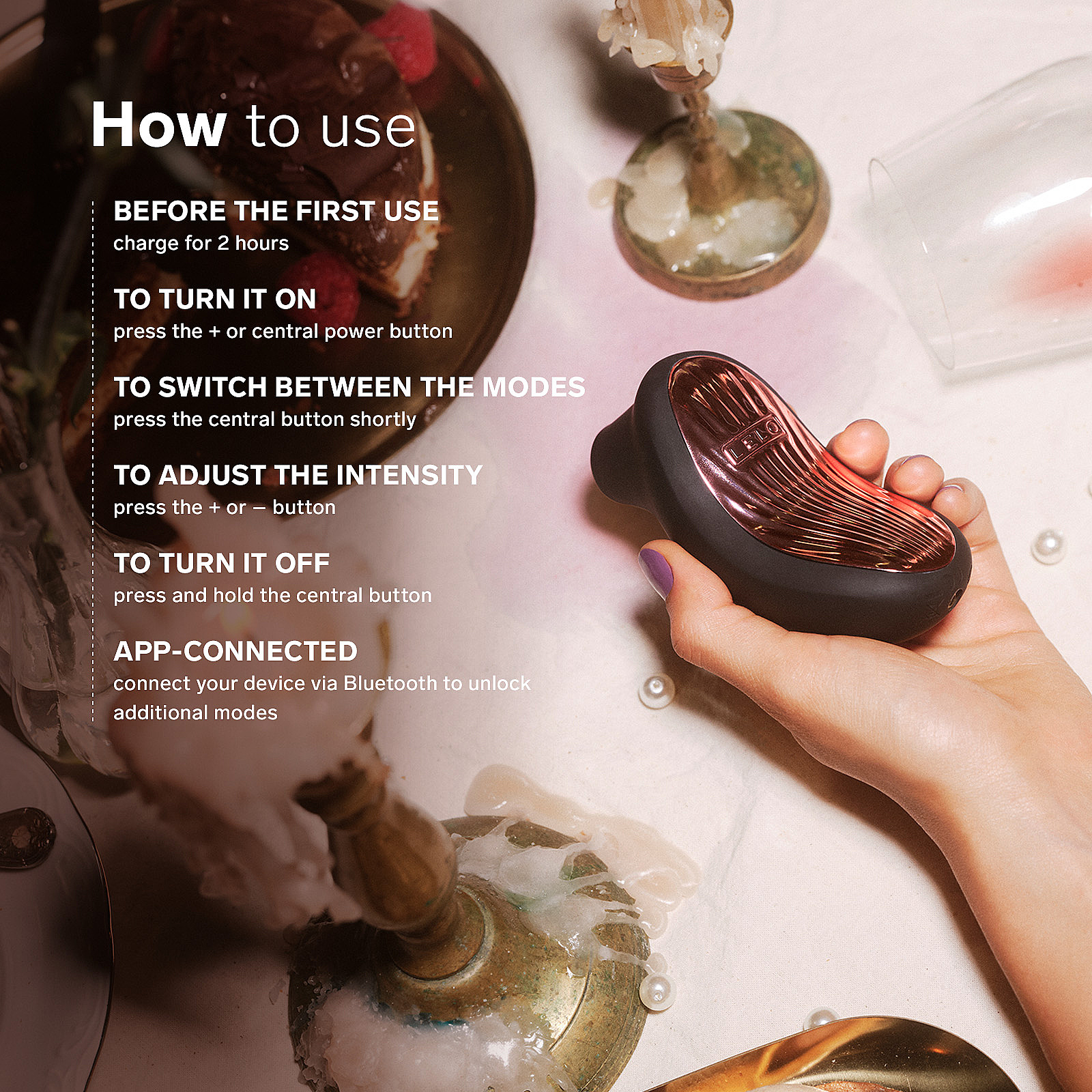 Ideální pro jemné solo hýčkání, škádlivé předehry i párové hrátky na dálku díky „Love Bridge“. Díky tichému chodu a kompaktní velikosti je skvělá i na cesty, když toužíte po diskrétní a luxusní rozkoši.