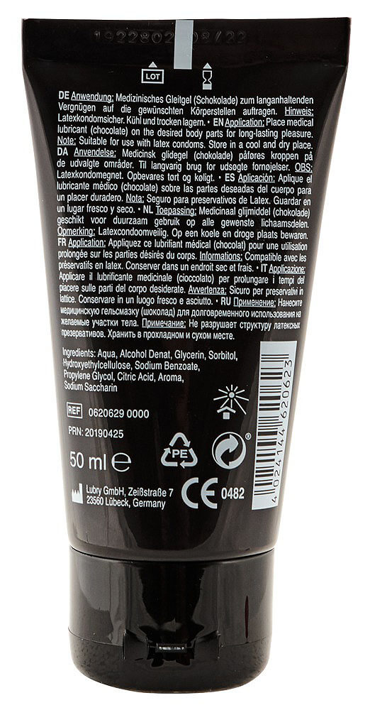 Lubrikační a masážní gel s příchutí bílé čokolády.
