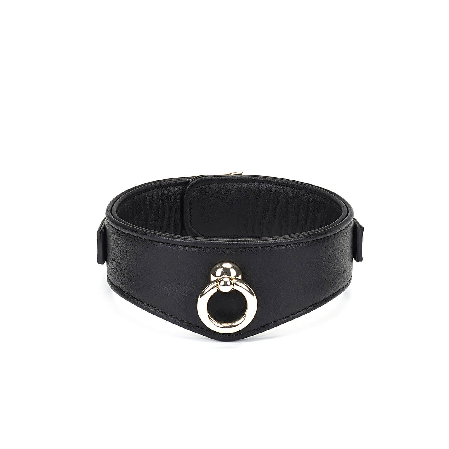 Obojek je vyroben z nejjemnější černé kůže, která je nejen esteticky přitažlivá, ale také mimořádně pohodlná. Kovové přezky umožňují snadné nastavení velikosti, takže vždy dosáhnete perfektního padnutí.