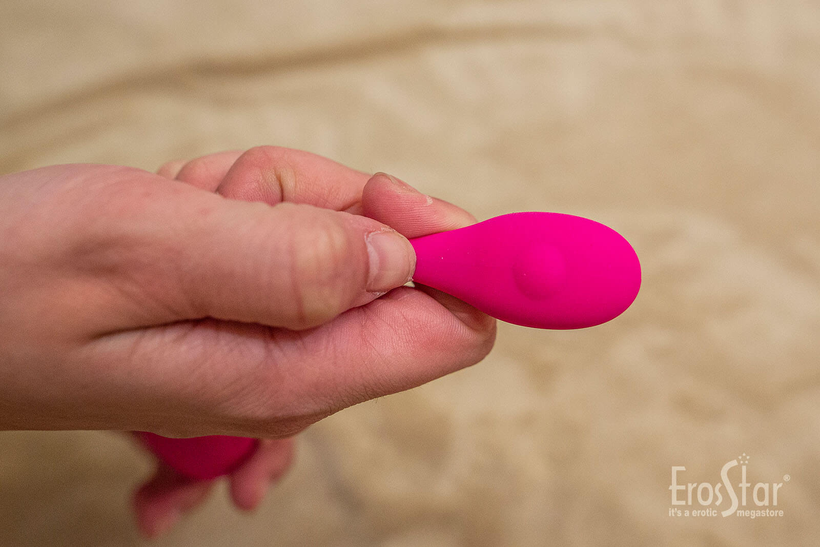Ovládací tlačítko se nachází na konci provázku, který je umístěn vždy mimo vaginu.