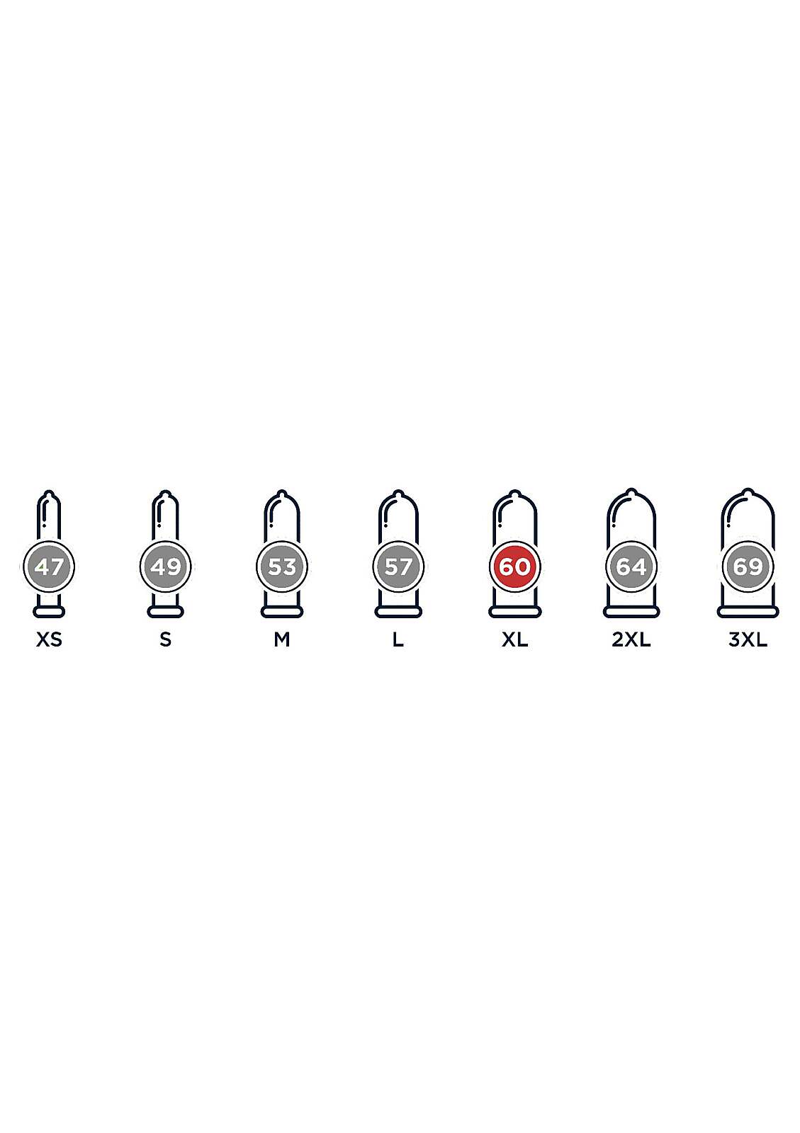 Se MISTER SIZE CONDOM SIZE XL 60mm si užijete neodolatelně přirozený pocit díky ultra jemné tloušťce 0,05 mm, která zvyšuje intenzitu vnímání každého pohybu. Precizní „fine tuning“ velikosti zajistí, že XL šířka přilne bezpečně a neklouže ani na užších penisech. Přírodní kaučukový latex je průhledný a hladký, takže nechá vyniknout tělesné blízkosti a vizuální přitažlivosti. Předlubrikovaný povrch usnadní každé vniknutí a plynulý rytmus bez nepříjemného tření. Praktický rezervoár přidává klid a bezpečí v těch nejžhavějších chvílích. Veganské složení potěší svědomitou volbu bez kompromisů. Nominální šířka 60 mm přesně odpovídá obvodu penisu 13,5–14,5 cm – dokonalé padnutí, žádné sklouzávání, jen čistá rozkoš.