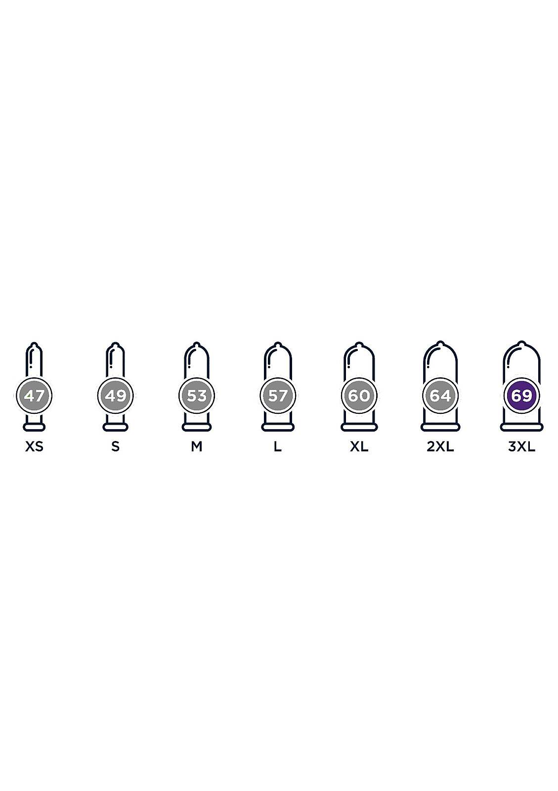 Se MISTER SIZE CONDOM SIZE XXXL 69mm si užijete neodolatelně přirozený pocit díky ultra jemné tloušťce 0,05 mm, která zvyšuje intenzitu vnímání každého pohybu. Precizní „fine tuning“ velikosti zajistí, že XXXL šířka přilne bezpečně a neklouže ani na užších penisech. Přírodní kaučukový latex je průhledný a hladký, takže nechá vyniknout tělesné blízkosti a vizuální přitažlivosti. Předlubrikovaný povrch usnadní každé vniknutí a plynulý rytmus bez nepříjemného tření. Praktický rezervoár přidává klid a bezpečí v těch nejžhavějších chvílích. Veganské složení potěší svědomitou volbu bez kompromisů. Nominální šířka 69 mm přesně odpovídá obvodu penisu 15,5–16,5 cm – dokonalé padnutí, žádné sklouzávání, jen čistá rozkoš.