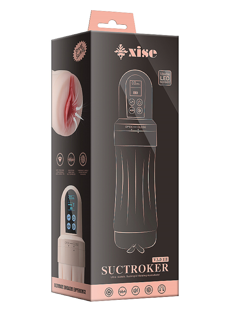 Mistress Sucktroker III si vás získá 5 úrovněmi sání, které vás rytmicky obepnou a přesně přizpůsobí vaše touhy. 9 režimů vibrací dodá každému tahu jiskru a umocní prožitek do posledního pulzu. Měkký, stimulační vnitřní povrch rozmazlí každé nervové zakončení a zve k dalším kolům rozkoše. Realistický otvor naplní vaše fantazie svůdnou přesvědčivostí. LED osvětlení přidá vizuální šmrnc a atmosféru, když to začne být opravdu žhavé. Automatické odvodnění vody usnadní údržbu, takže se můžete soustředit jen na potěšení. Pravidelné používání pomůže s tréninkem sebekontroly a prodloužením výdrže při milování. Po akci stačí vyjmout vložku a umýt ji vlažnou mýdlovou vodou, ideálně s čističem pomůcek. Pro nejkluzčí jízdu používejte lubrikant na vodní bázi.