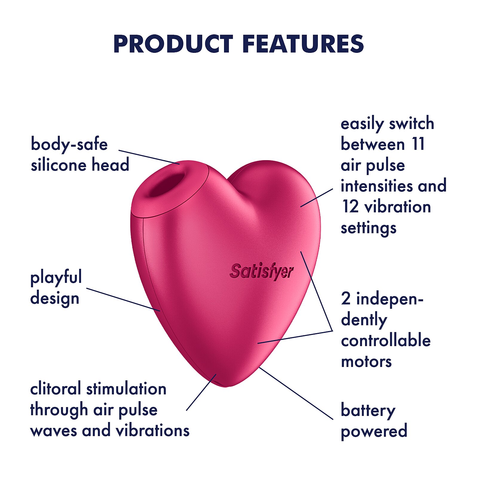 Model Cutie Heart Battery Series (Pink) od značky Satisfyer kombinuje tlakové vlny a vibrace pro intenzivní klitorální rozkoš. Dva samostatně ovladatelné motory se postarají o souběžné sání i vibrování a dovolí vám míchat 11 intenzit air-pulse s 12 programy vibrací do nekonečna. Kompaktní srdíčkový tvar skvěle padne do ruky a zůstane diskrétní i na cestách. Hedvábně jemný lékařský silikon je mimořádně hygienický, hebký na dotek a citlivý k pokožce – přesně to, co si vaše nejněžnější místa zaslouží. Voděodolnost IPX6 vybízí k mokrým hrátkám ve sprše i ve vaně, zatímco tichý režim šeptá, když chcete zůstat nenápadní. Napájení 2× AAA bateriemi (nejsou součástí) znamená okamžité potěšení bez čekání na nabití – stačí vložit a užít si další kolo.