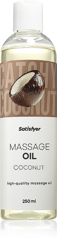 Satisfyer Massage Oil 250 ml (Coconut) vás obklopí exotickou, hřejivou kokosovou vůní, která probouzí fantazii a láká k dlouhým intimním masážím. Jeho výživné složení z kvalitních olejů umožňuje rukám klouzat po pokožce bez námahy, zatímco ji zanechává hedvábně jemnou a svůdně hladkou. Satisfyer Massage Oil 250 ml (Coconut) tvoří uvolněnou prázdninovou atmosféru, ideální pro hravé chvilky ve dvou i uklidňující solo rituály. Stačí malé množství a účinek se projeví okamžitě – můžete kdykoli znovu přidat pro ještě delší požitek. Jeho neutrální, jemná formule je všestranná a přizpůsobí se vaší náladě i tempu. Satisfyer Massage Oil 250 ml (Coconut) kombinuje slunečnicový, sójový a jojobový olej s vitaminem E (Tocopherol) pro pěstěný pocit na kůži. Objem 250 ml je jako pozvánka k nekonečným dotekům, které potěší tělo i smysly.