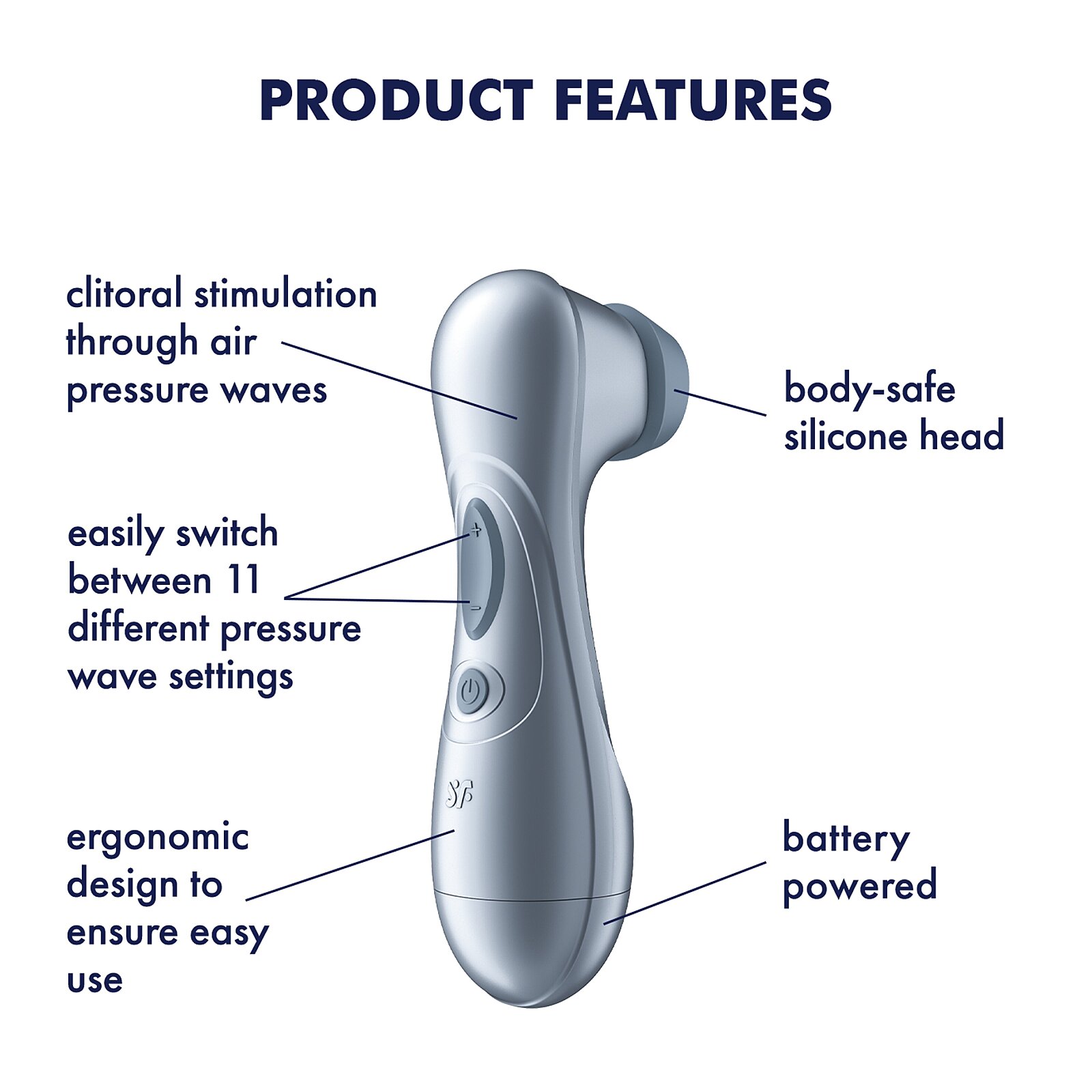 Satisfyer Pro 2 Generation 2 Battery Series (Violet Blue) od Satisfyer používá propracovanou Air Pulse technologii, která obklopí klitoris a rozvlní ho intenzivními tlakovými pulzy. Měkká silikonová hlavice je širší a hebká, takže obejme citlivé místo naplno a citlivě, zatímco flirty pulzace šimrají k vyvrcholení. 11 úrovní intenzity vám dovolí přeskakovat od něžného po bouřlivé tempo jedním kliknutím. Tichý chod drží vaše tajemství v bezpečí – ať už mezi peřinami, nebo ve vaně, protože vodotěsnost IPX7 zve i do mokrých hrátek. Bezdotyková stimulace je hygienická a snadno se čistí, takže jste připraveni na další kolo během okamžiku. Napájení na 2× AAA baterie je ideální na cesty i spontánní noci plné touhy – stačí vložit a užívat.