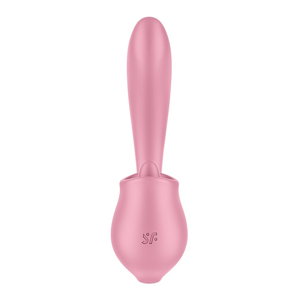 Satisfyer Tongue Genius (Pink) je jazýčkový vibrátor s pružným silikonovým jazýčkem, který napodobuje orální sex a vyvolává slastné chvění při každém dotyku. Jeho ergonomicky zakřivené tělo přesně cílí na G-bod a současně dráždí klitoris, takže každé přiložení je hrou dvojí stimulace a vzrušujících kontrastů. Superjemný silikon přenáší silné vibrace hedvábně měkkým povrchem, aby každé olíznutí i zavibrování bylo neodolatelně intenzivní. 8 režimů lízání a 8 programů vibrací ti umožní přepínat mezi něžným laškováním a pulzující extází. Dvě intuitivní tlačítka zaručí, že se soustředíš jen na rozkoš – ovládání je snadné a šeptem tiché pro naprosto diskrétní chvíle. Vodotěsnost IPX7 tě zve do sprchy i vany, kde se jazýček rozpohybuje ve vlnách teplé vody a přidá nové vjemy. A když dojde šťáva, USB‑C nabíjení a lithium‑iontová baterie tě rychle vrátí do hry. Čištění? Hravě snadné díky hygienickému, tělu bezpečnému silikonu.