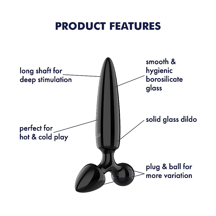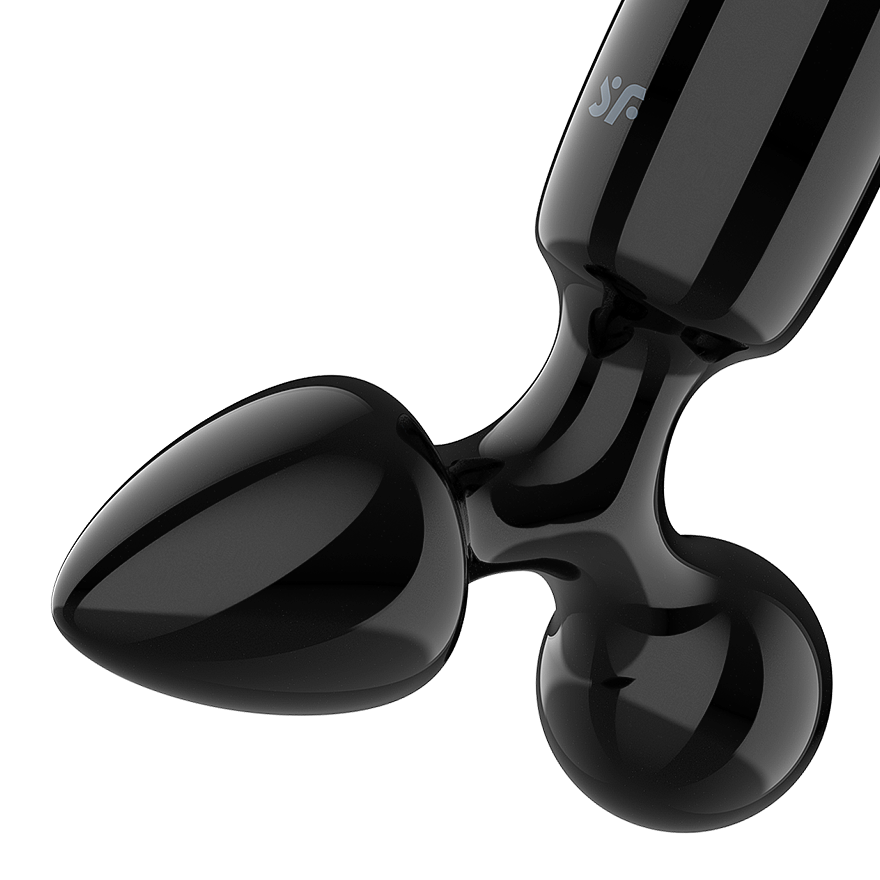 Satisfyer Triple Crystal 1 (Black) je smyslný skleněný dildo s trojitou porcí rozkoše. Jeho 21cm zúžené tělo se s ladností ponoří tam, kde ho chcete cítit, zatímco dvě menší rozdílné zásuvné hlavice lákají ke střídání rytmů i intenzit. Hladký povrch klouže po kůži jako hedvábí a s kapkou lubrikantu se promění v plynulý tanec na vašich křivkách. Temperaturně odolné borosilikátové sklo dovolí horkou i studenou hru – předehřejte ve vodě nebo ochlaďte v lednici a nechte nervová zakončení jiskřit. Široká základna drží vše bezpečně na místě a dělá z hračky ideální volbu i pro anální potěšení. Unisex design zve ke hrám o samotě i ve dvou, na klitoris, vaginu i análek, a klidně i k celotělovým masážím, kdy kuličkový chlad či hřejivost rozpohybují fantazii. Sklo je odolné vůči roztříštění, dále je lehké, hygienické a snadno se čistí. Satisfyer Triple Crystal 1 (Black) je prostě křišťálová entrée do světa precizní stimulace, která hýčká každý milimetr vašeho těla.