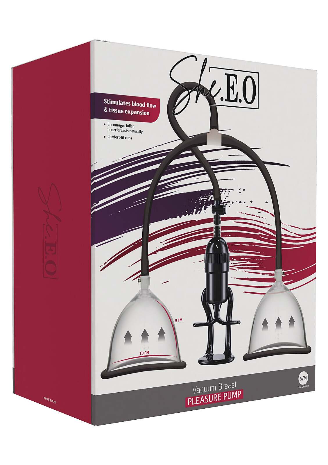 She.E.O – Vacuum Breast Pleasure Pump Medium byla navržena pro jemné, ale intenzivní zvyšování citlivosti prsou. Velké kalíšky o průměru 10 cm a výšce 9 cm něžně obejmou ňadra a podtrhnou jejich krásu, zatímco pevný podtlak citelně zvýší prokrvení a reakce na dotek. Chytrý vakuový ventil na horní straně kalíšků udrží sání i po odpojení hadičky a ruční pumpy – nic vás nevyruší v rozkoši. Kdykoli budete chtít, rychloupouštěcí ventil okamžitě uleví tlaku a dá vám plnou kontrolu nad intenzitou. Ruční pumpa dovolí precizní, hravé dávkování podtlaku přesně podle nálady. Flexibilní silikonová hadice se přizpůsobí každé poloze a odolné ABS kalíšky zajistí jistotu a stabilitu. Elegantní černá barva dodává celé hře sofistikovaný nádech. A díky celkové délce 76 cm a hmotnosti 594 g působí set robustně, stabilně a vyzývá k dlouhým experimentům.