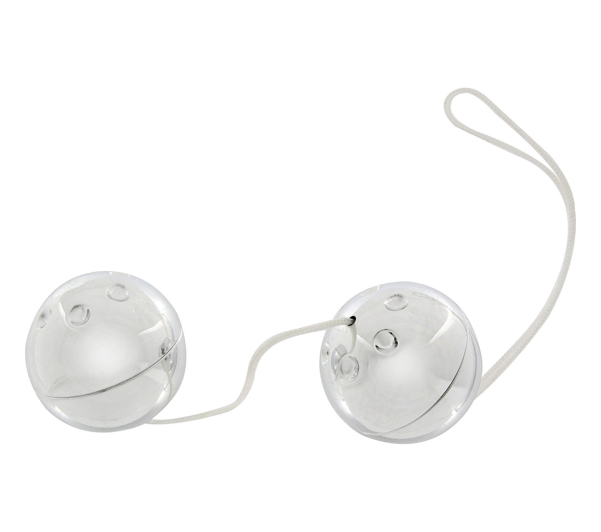 Vibrující vaginální kuličky v metalické barvě. Silver Metal Balls jsou klasické venušiny kuličky vyrobené z pevného PVC. Povrch kuliček imituje svým proveddením pravý kov. Vaginální kuličky Silver Metal Balls Při každém pohybu vydávají vibrace, protože mají v sobě vibrační kuličku. Každá kulička má na sobě malé ďolíčky, které při pohybu působí stimulaci na vaginální stěnu.