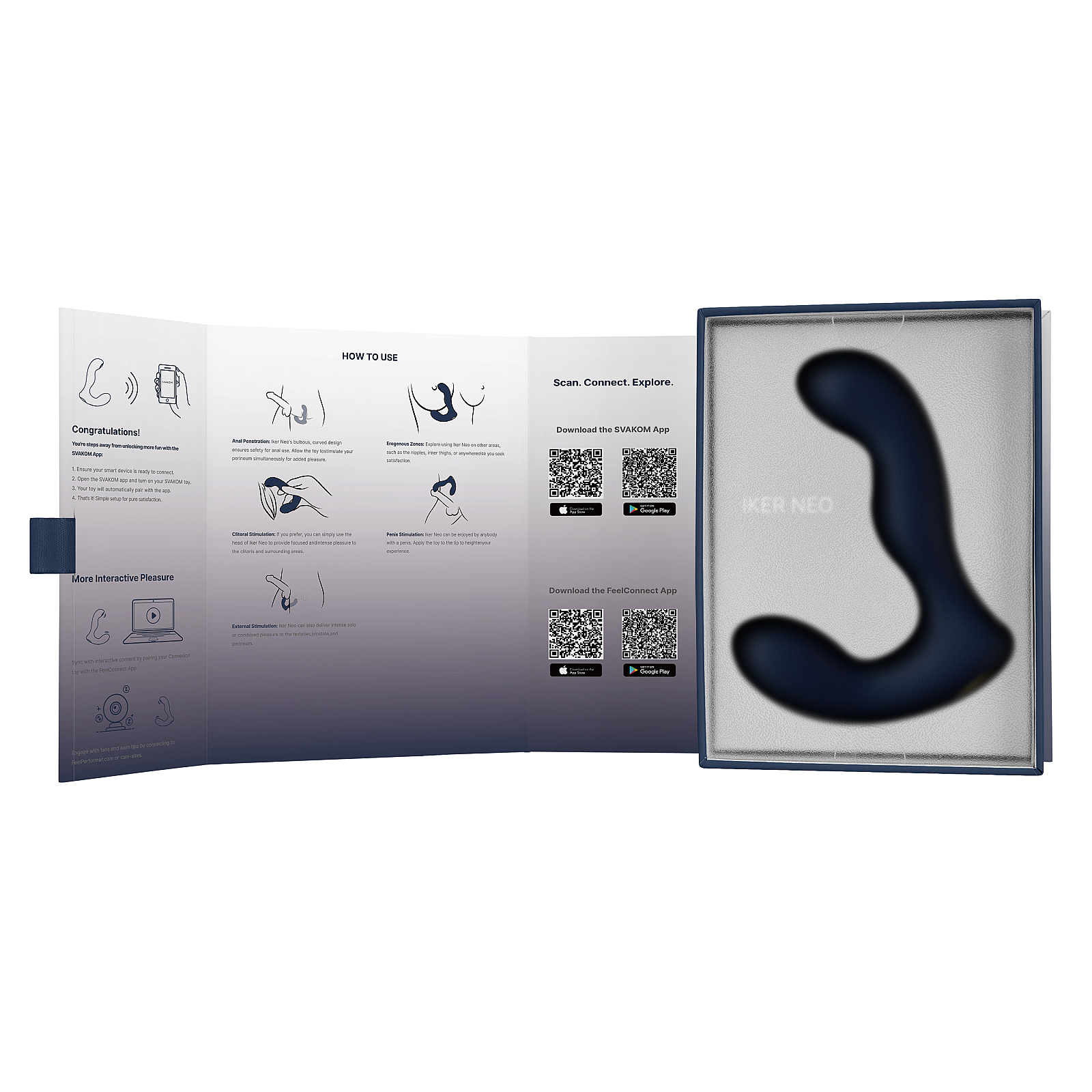 Svakom Iker Neo vzrušuje prostatu pulzující špičkou a současně masíruje hráz vibrujícím ramenem – dvojitý zásah pro maximální slast.