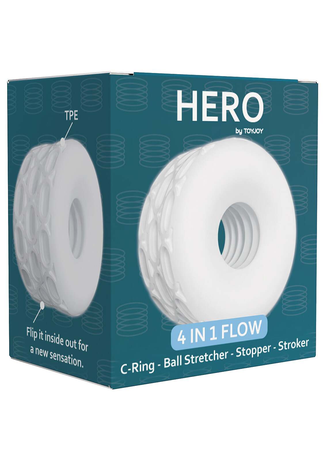 ToyJoy 4-in-1 Flow Ring (White) od značky ToyJoy je super pružný a ergonomický kroužek navržený pro čtyři způsoby potěšení. Jako C-ring zvyšuje výdrž a tvrdost, aby tvé finále bylo déle a silněji na dosah. Jako ball stretcher vytváří podmanivé pnutí a hlubší vjemy při každém pohybu. Jako stopper funguje jako zarážka pro kontrolu hloubky pronikání, když je penis příliš dlouhý, a přináší pohodlí i vzrušení oběma partnerům. A jako stroker s oboustranným (reverzibilním) designem nabízí pestrou texturu pro vzrušující sólo hrátky. Příjemný TPE materiál je hebký, elastický a přizpůsobí se tvým tvarům. Bílá barva dodá čistý vzhled. Vnitřní průměr 2,5 cm (vnější 6 cm) a hmotnost 90 g zajistí pevné, ale pohodlné sevření. Snadno se čistí a je připraven kdykoli, když chceš vystoupit jako legenda svého potěšení.