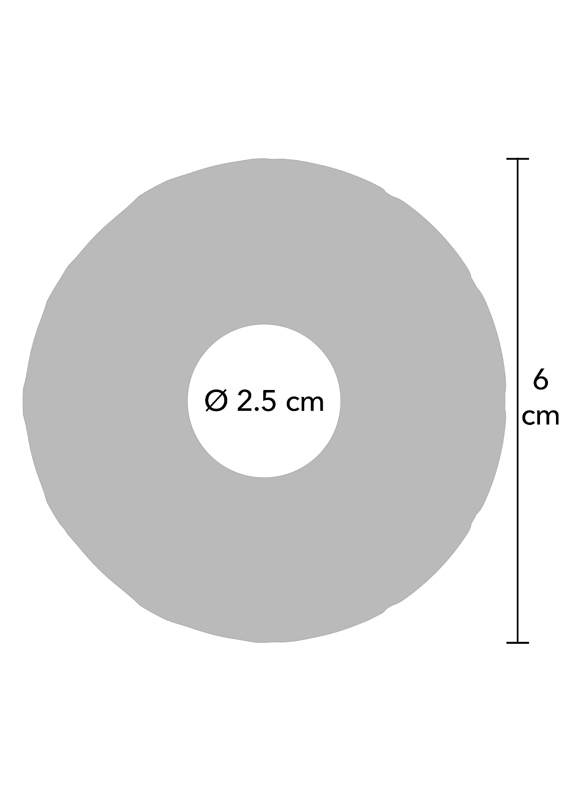 - Průměr: 2,5 cm (vnitřní), 6 cm (vnější)