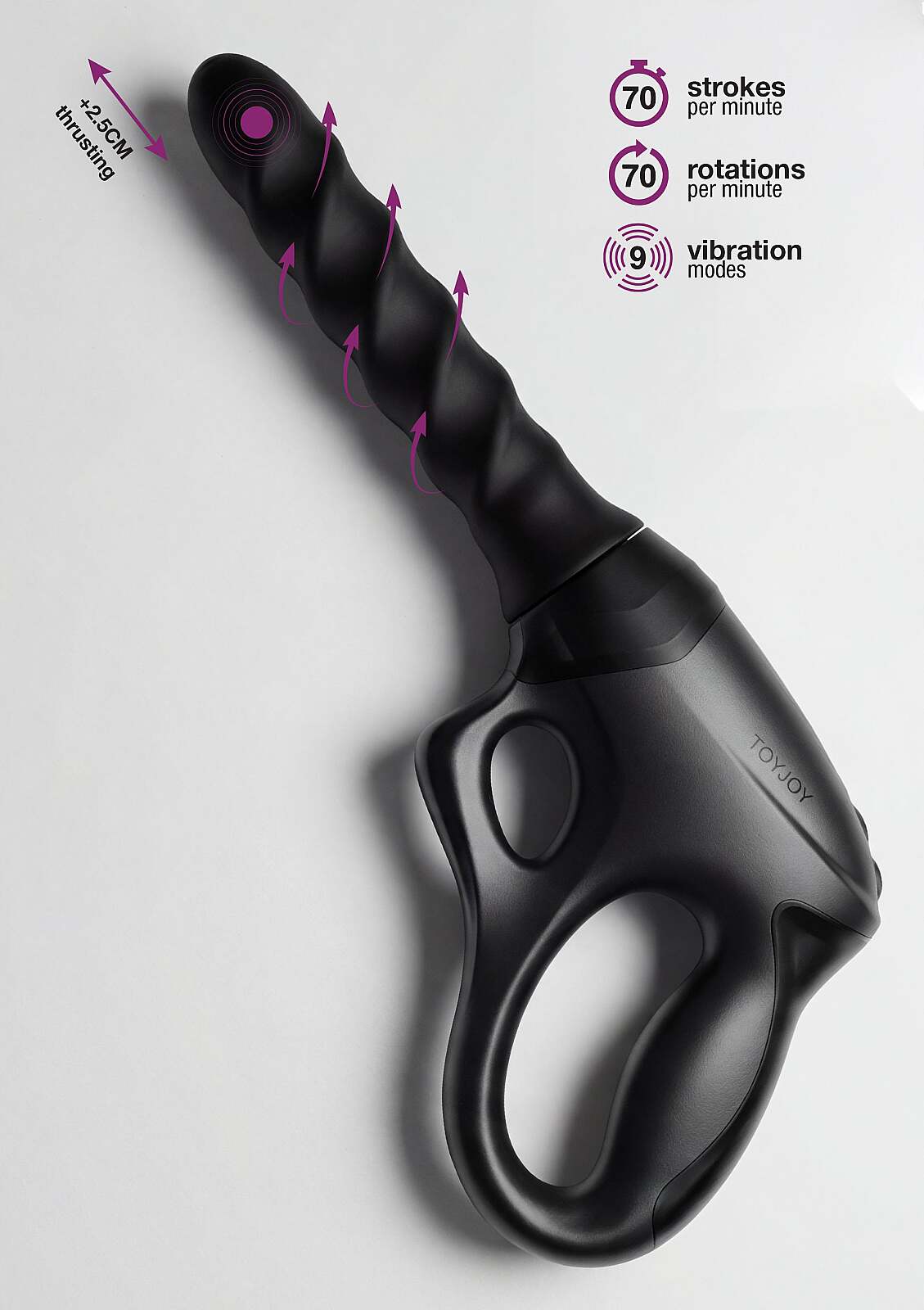 TOYJOY Designer Edition Cadence Fatale PRO+ je navržen pro hluboké uspokojení a odvážné objevování. Pistolová rukojeť dává jistotu a kontrolu nad každým pohybem. Patentovaná 360° rotace uvnitř víří a dráždí každým okamžikem. Thrusting zdvih až 2,5 cm s 70 tahy za minutu se mísí se 70 otáčkami za minutu pro pohlcující jízdu. 9 vibračních režimů se hladce přizpůsobí náladě – od jemného pulzu po odvážné tempo. Nastavitelný přísavný stojan promění hračku v plnohodnotný hands‑free stroj na rozkoš. Vhodné pro vaginální i anální hru, s hedvábně hladkým silikonem a pevností ABS pro jistotu a komfort. Vkládací délka 16 cm nabízí hluboké prožívání přesně tam, kde ho chcete. IPX6 voděodolnost zvládne divočejší scény i vodní hrátky. Dobíjecí provedení udrží tempo, když si vaše tělo řekne o víc.