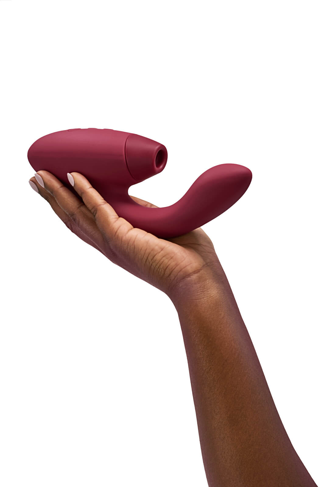 Womanizer Duo 2 je kombinací tlakových vln technologie Pleasure Air, která umožňuje bezdotykovou stimulaci klitorisu, a silných vibrací, které se díky perfektně tvarovanému flexibilnímu rameni zaměří přímo na váš bod G.